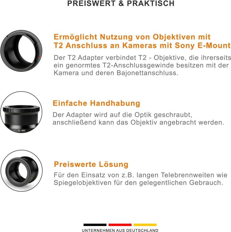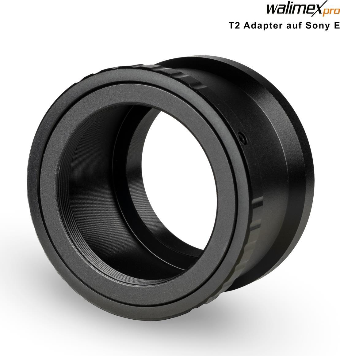 Walimex pro T2 Adapter für Sony E-Mount - Adapterring mit manuellem Fokus, einfache Handhabung, Objektiv-Anschlussring kompatibel mit Sony NEX-3 NEX-3C NEX-3N NEX-5 NEX-5C, Alpha A7 A7R IV A7R V etc. (1023361)
