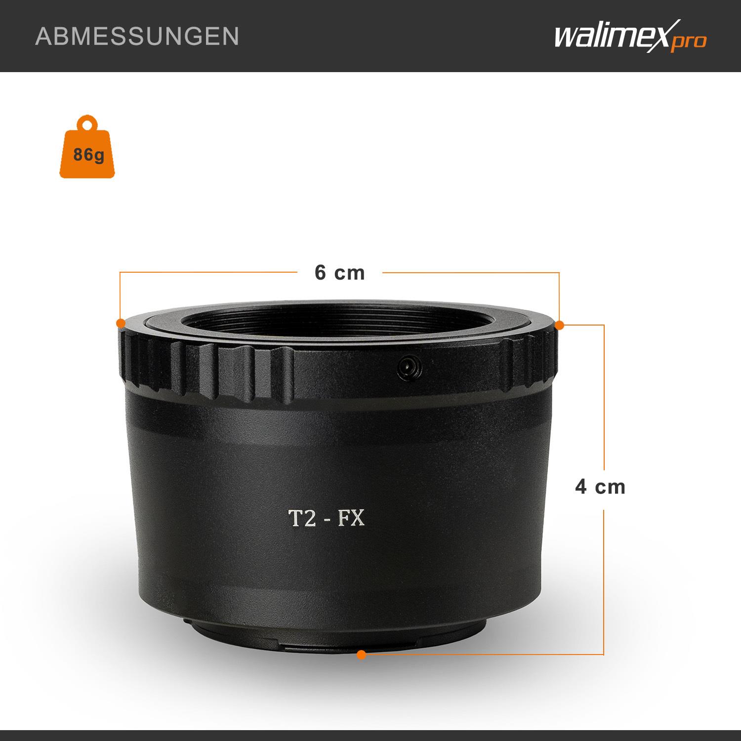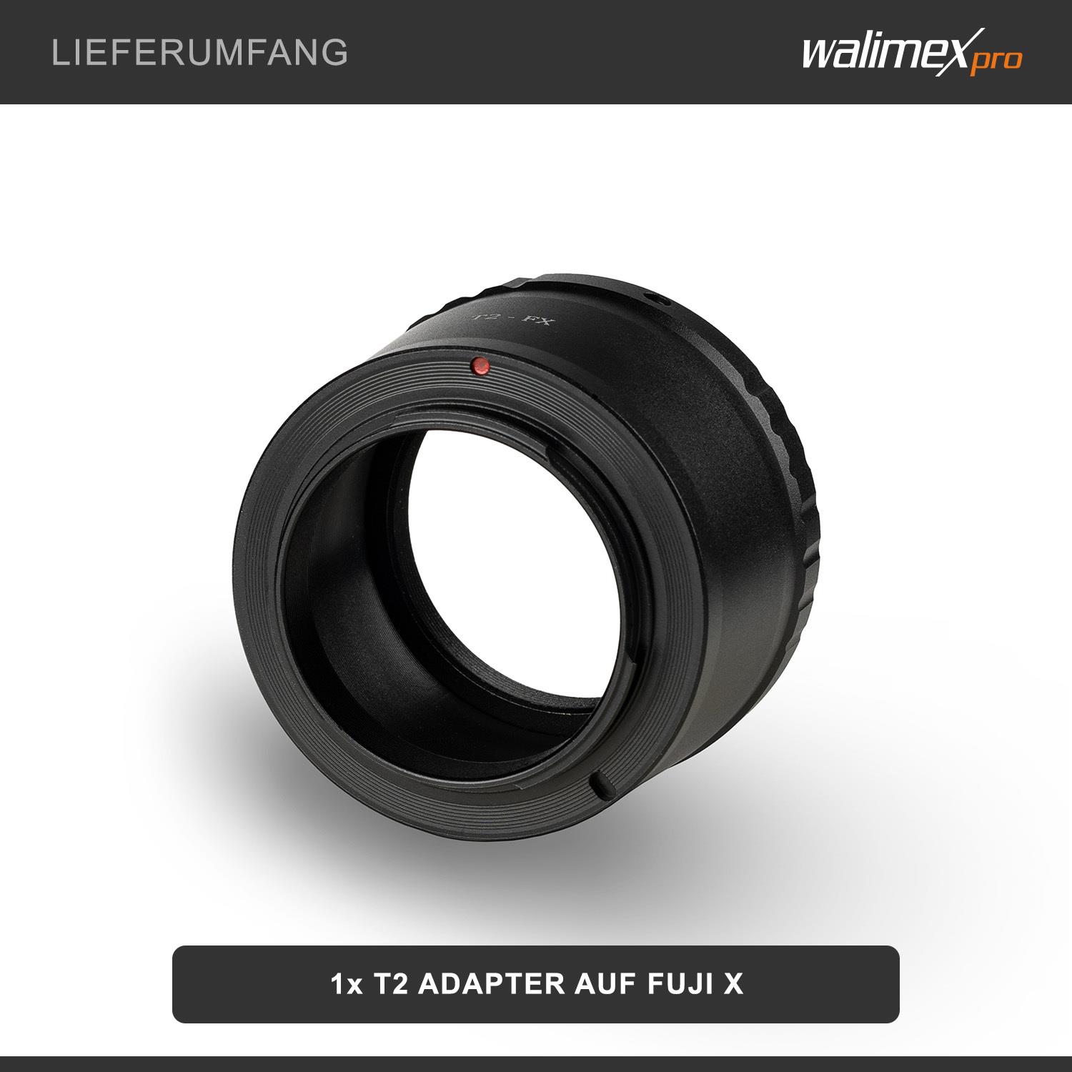 Walimex pro T2 Adapter für Fuji X - Adapterring mit manuellem Fokus, einfache Handhabung, Objektiv-Anschlussring kompatibel mit Fuji X-T10, X-T20, X-T1, X-T2, X-E2, X-E3 (1023364)