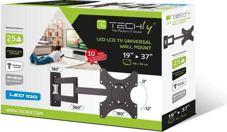 • Wandhalterung für LCD TV LED 48,30cm (19")-37 neigbar drehbar 3 Gelenke, schwarz Hersteller: Techly (ICA-LCD-2903)