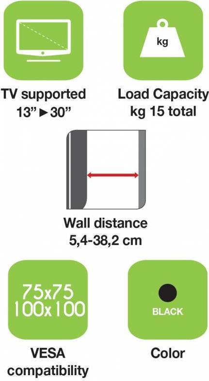 • Wandhalterung für LCD TV LED 33,00cm (13")-30 neigbar 2 Gelenke, schwarz Hersteller: Techly (ICA-LCD-923B)