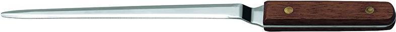 WEDO Brieföffner mit Holzgriff und Klinge aus verchromtem Edelstahl, gebogene Form.