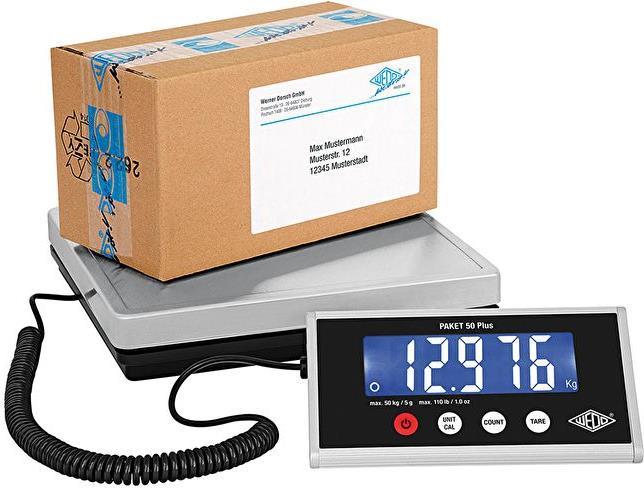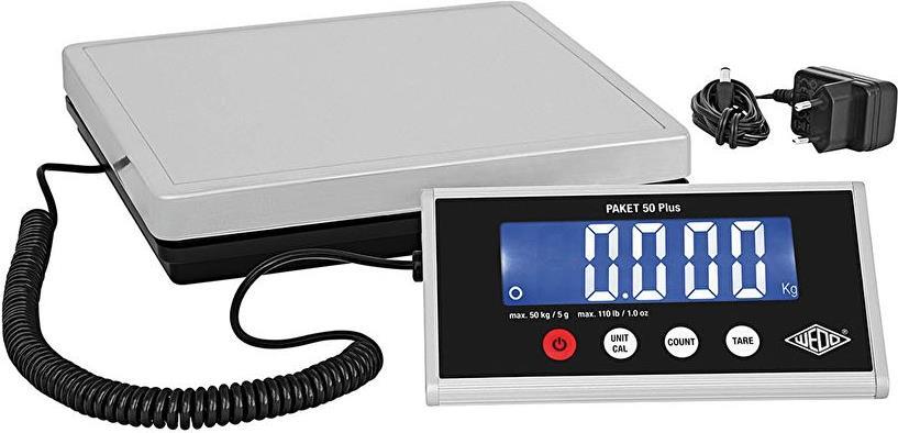 WEDO Elektronische Paketwaage Paket 50 Plus, 50 kg aus Aluguss, Wiegeteller aus Edelstahl, Tara-, Justier - 1 Stück (50 7605005)