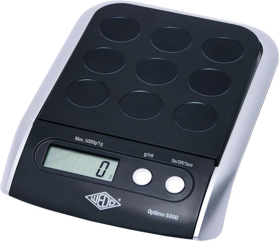 WEDO Optimo 5000 - elektronische Waage in modernem Design mit großem Wiegeteller. Die praktische Ein-Tasten-Bedienung mit Tara-Funktion sowie die gut lesbare LCD-Anzeige mit 13 mm hohen Ziffern sorgen für leichtes Handling. Bei Nichtbenutzung schaltet die Waage nach ca. 60 Sekunden automatisch ab. Gehäuse aus stabilem ABS-Material.