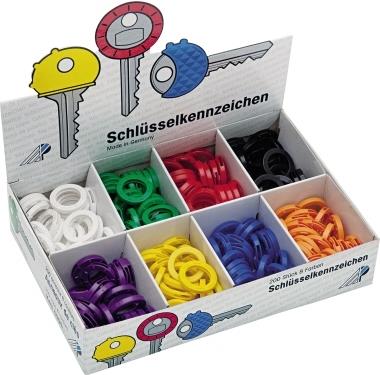 WEDO Schlüsselkennringe, Inhalt: 200 Stück Sortimentskarton Durchmesser: 24 mm, Karton mit 8 Fächern, sortiert in den Farben: hellblau, blau, hellgrün, grün, gelb, orange, rot, schwarz Maße Sortimentskarton: (B)205 x (T)140 x (H)45 mm (2628008)