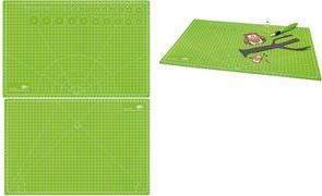 Die robuste Schneidematte ist beidseitig bedruckt mit cm-Raster, verschiedenen Winkeln und Kreisen. Der 3-lagige Aufbau mit speziellem Innenkern und selbstschließender Oberfläche erlaubt präzise, spurlose Schnitte und schont die Klingenschärfe. Auch als Schreibunterlage nutzbar.