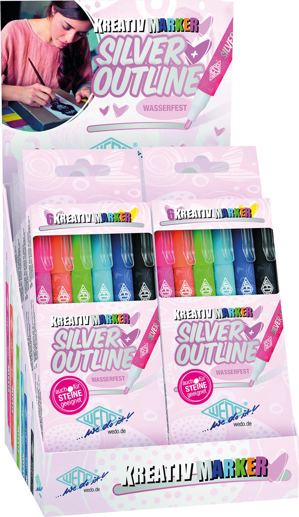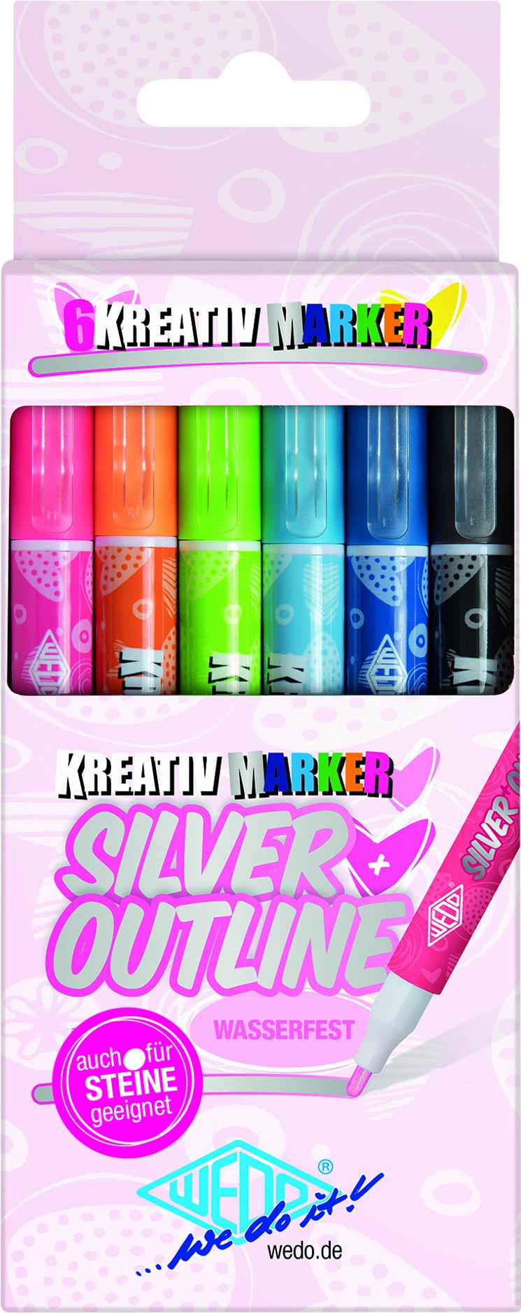 Wedo Silver Outline - 6 Stück(e) - Orange - Schwarz - Blau - Cyan - Grün - Orange - Silber - 1 mm - 2 mm - Fensterbox (252 600699)