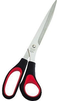 WEDO Universalschere aus rostfreiem Edelstahl, poliert. Mit messerscharfer Schneide und leichtem Gang. Einzeln schlank zugeschliffene Scherenblätter. Handgerecht geformter schwarzer Griff aus ABS-Kunststoff mit roten Soft-Einlagen, auf SB-Probierkarte.