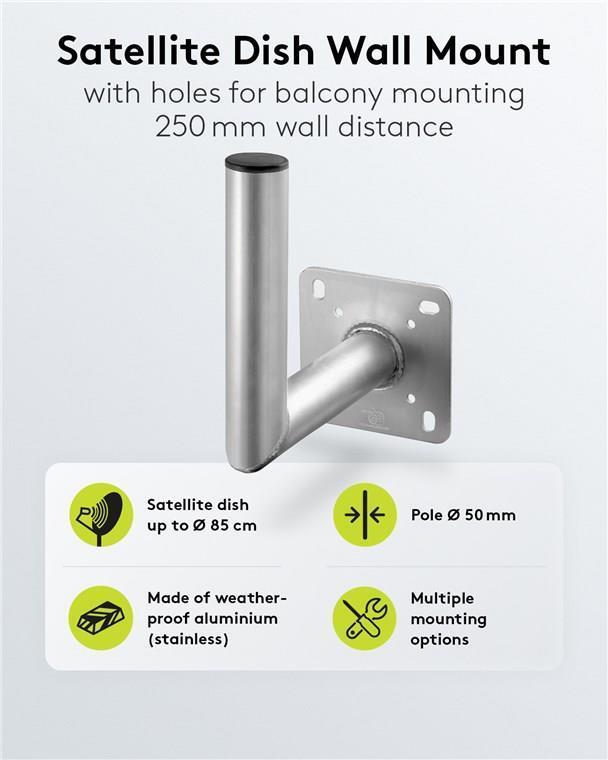 Wentronic Goobay Aluminuim SAT-Schüssel Wandhalter, Grau - mit 250 mm Wandabstand (67300)