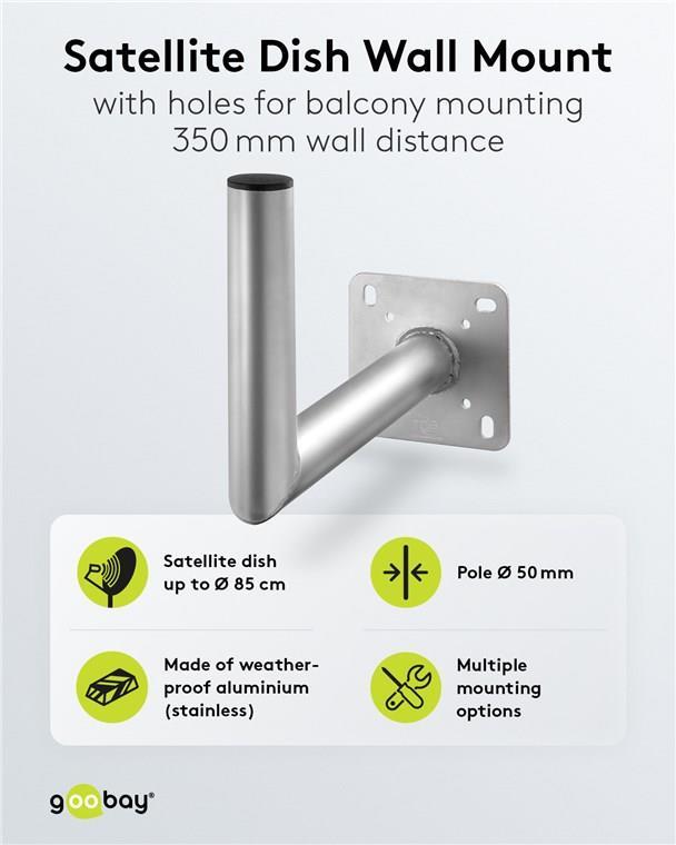 • Wentronic Goobay Aluminuim SAT-Schüssel Wandhalter, Grau - mit 350 mm Wandabstand (67301)