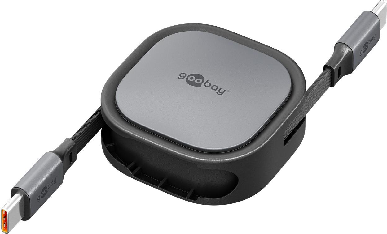 • Wentronic goobay selbstaufrollendes USB-C Kabel sw/si 15W in robuster Gehäuse (77424)