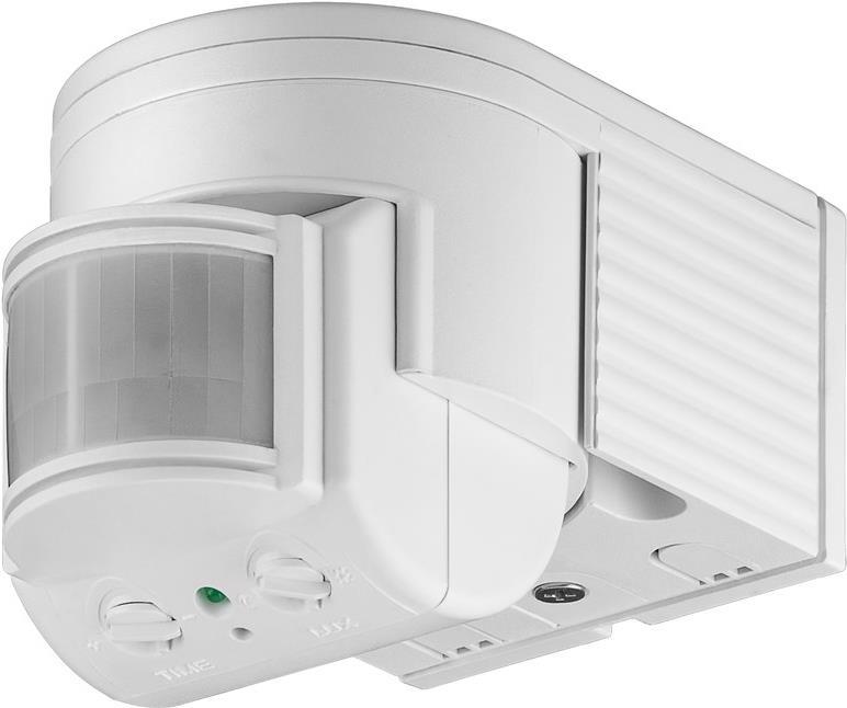 Infrarot Bewegungsmelder zur Wandmontage im Innen-oder Außenbereich mit variabel verstellbarem Sensor. LED geeignet und für andere Leuchtmittel mit geringen Grundlasten.