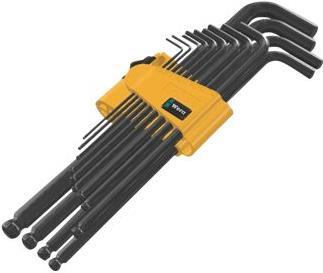 Hochwertiger Winkelschlüsselsatz für zöllige Innensechskantschrauben im praktischen Clip aus verschleißfreiem Material für dauerhaft sicheren Halt der Winkelschlüssel bei gleichzeitig einfacher Entnahme. Winkelschlüssel mit Hex-Plus-Profil: Bietet größere Anlageflächen im Schraubenkopf. Die Kerbwirkung wird dadurch auf ein Minimum reduziert, die Zerstörung des Schraubenkopfes nahezu eliminiert. Die Kugel am langen Schenkel erlaubt sicheres Arbeiten auch in schwierigen Einbaulagen. Die BlackLaser-Oberflächenbehandlung sorgt für hervorragenden Oberflächenschutz, auch vor Korrosion, und lange Lebensdauer. Gelaserte und dadurch abriebfeste Größenkennzeichnung auf den Winkelschlüsseln für schnellen Zugriff.