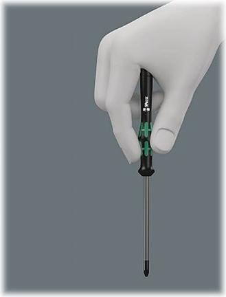 Hochwertiger Wera Micro Schraubendrehersatz für feinmechanische Verschraubungen. Durch Abstützen der Hand auf der Drehkappe und durch die Schnelldrehzone unterhalb der Drehkappe ist blitzschnelles Zwirbeln möglich. Zeitintensives Umgreifen entfällt. Kraftzone mit integrierten Weichzonen sorgt für die Übertragung hoher Löse- und Anzugsmomente. Präzisionszone für den richtigen Drehwinkel bei Justierarbeiten. Die Wera Black Point-Spitze bietet Passgenauigkeit und optimierten Korrosionsschutz. Inklusive praktischem Rack zur übersichtlichen Aufbewahrung der Schraubendreher.