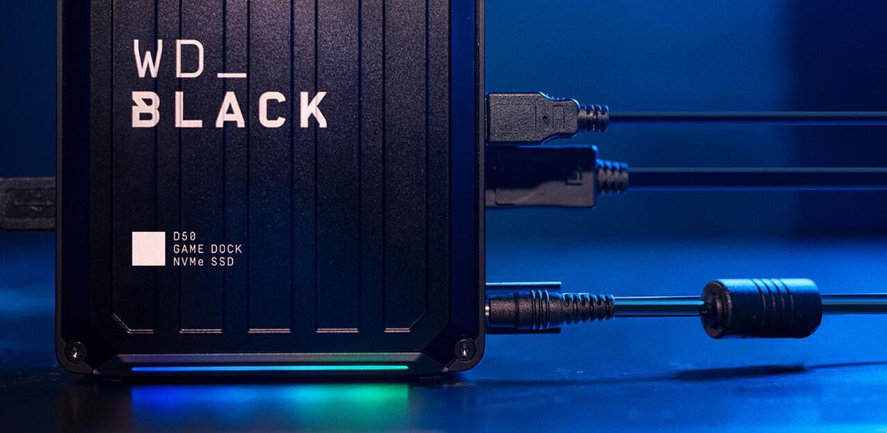 Mit der WD BLACK D50 Game Dock NVMe SSD verwandeln Sie Ihren Laptop ganz einfach in eine integrierte Gaming-Station. Kabelgewirr war gestern - mit einem einzigen Thunderbolt3-Kabel mit mehreren Anschlüssen können Sie alle Peripheriegeräte und einen weiteren Bildschirm mit bis zu 5K-Auflösung und 60 Hz anschließen. So steht dem ultimativen, optimierten Gaming-Erlebnis nichts mehr im Weg. Die NVMe-Technologie mit bis zu 3.000 MB/s Lesegeschwindigkeit und bis zu 2.500 MB/s Schreibgeschwindigkeit sorgt für kürzere Ladezeiten. Dank 1 TB Kapazität können Sie mehr Spiele speichern. Abgerundet wird das kompakte und elegante Design von einer frei einstellbaren RGB-Beleuchtung, mit der Sie Ihr System nach Ihren Wünschen personalisieren können.