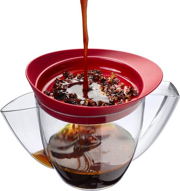 Die praktische Fett-Trenn-Kanne zum schnellen und einfachen Entfetten von Bratensäften, Suppen oder Brühen ist auch als Messkanne verwendbar (Füllvolumen: 1 Liter). Mit praktischem Sieb-Deckel für klumpfreie Suppen ...