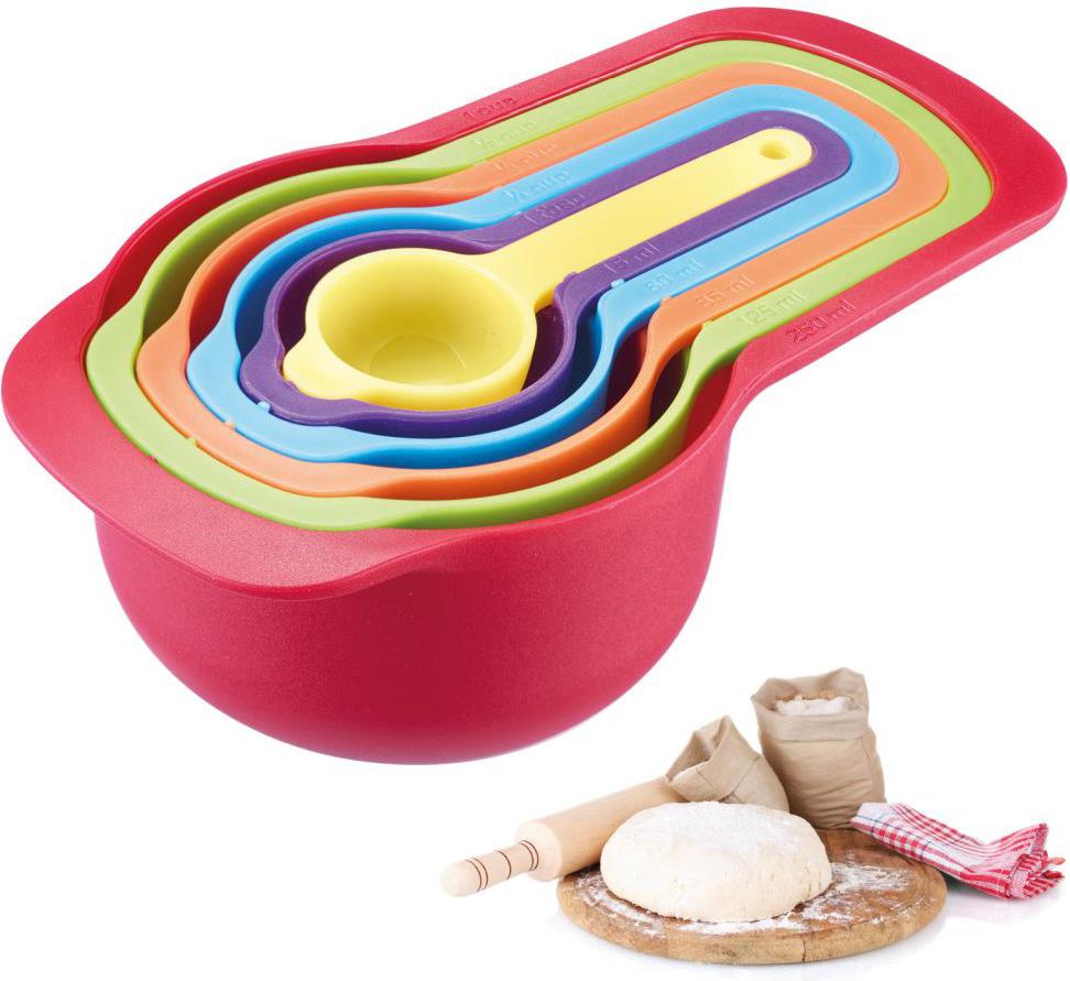 Backspaß für die ganze FamilieMit dem farbenfrohen Messlöffel-Set können Sie trockene Koch- und Backzutaten sowie Flüssigkeiten schnell und genau abmessen. Die unterschiedlich großen Löffel messen 7,5 ml (1/2 EL), 15 ...