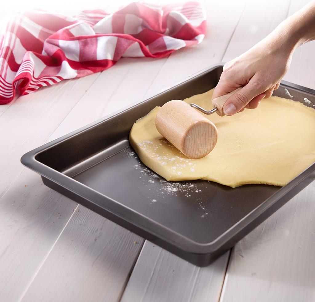 Backspaß für die ganze FamilieDer Backblechroller der Holz-Serie »Woody« darf in keiner Backstube fehlen: Er ist ein zylindrisch geformter Teigroller zum einfachen Walzen von Mürbe- und Hefeteig in eckigen Backformen, ...