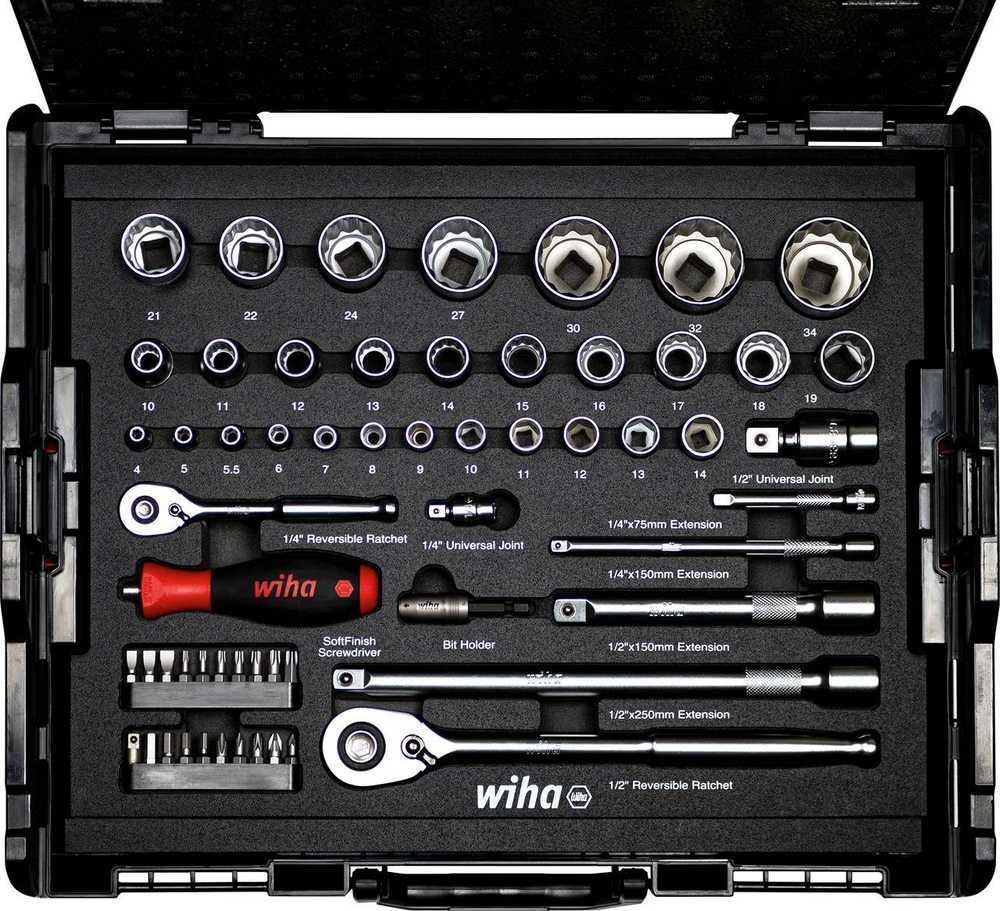 Schraub- und Montagearbeiten erfordern viele verschiedene Profile. Das 60-teilige Steckschlüsseleinsatz-Set von Wiha bietet dem Anwender eine umfangreiche Auswahl der gängigen Steckschlüsseleinsätze. Damit können Anwender jede Befestigung ...