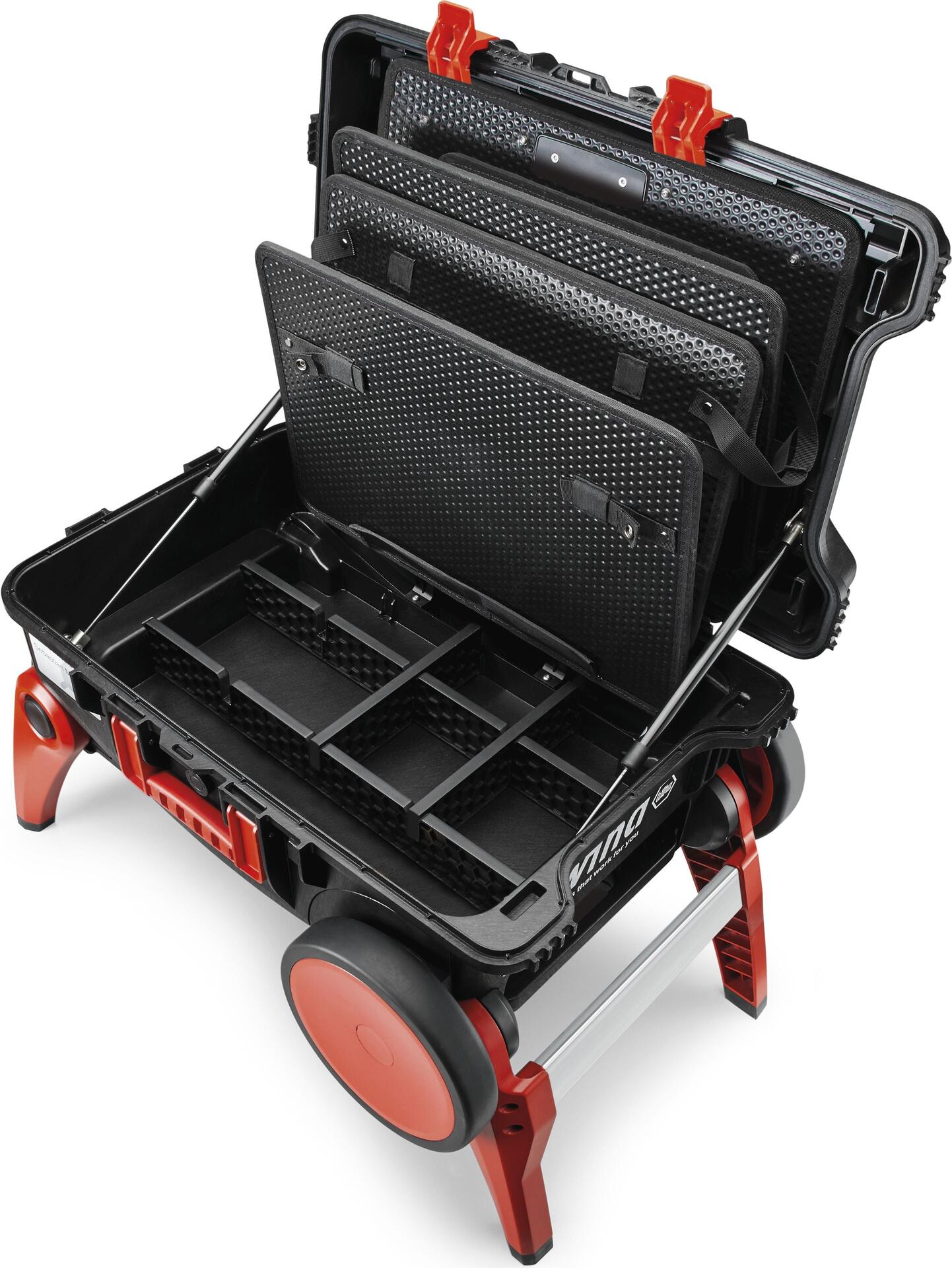 Elektriker benötigen eine Vielzahl von Werkzeugen an unterschiedlichen Orten. Viele Werkzeugkoffer bieten keine ausreichende Stabilität und es ist oft ein großer Aufwand, alle benötigten Werkzeuge geordnet unterzubringen. Der Werkzeugkoffer XXL III von Wiha bietet dagegen ausreichend Stauraum bei gleichzeitig absoluter Robustheit. Darüber hinaus enthält er speziell entwickelte Werkzeug-Aufbewahrungsfächer, die genügend Platz für die ordentliche Aufbewahrung eines umfangreichen Werkzeugsortiments bieten. Dank der extra großen Räder lässt sich der Koffer auch in unebenem Gelände oder auf Treppen bequem mitziehen. Die Füße können ausgeklappt werden, wodurch der Koffer zu einer rutschfesten Trittstufe wird. Zudem ermöglicht die erhöhte Position die bequeme und ermüdungsfreie Entnahme der Werkzeuge. Der V-förmige Einschnitt mit Skala im Deckel des Koffers erleichtert das Sägen von Materialien, wie z. B. Kabelkanälen, auf der Baustelle. Der aus robustem Polypropylen gefertigte Koffer ist zudem mit gasgefüllten Stoßdämpfern ausgestattet, die den Deckel in verschiedenen Positionen halten und verhindern, dass er sich ungewollt schließt und die Finger zerquetscht.