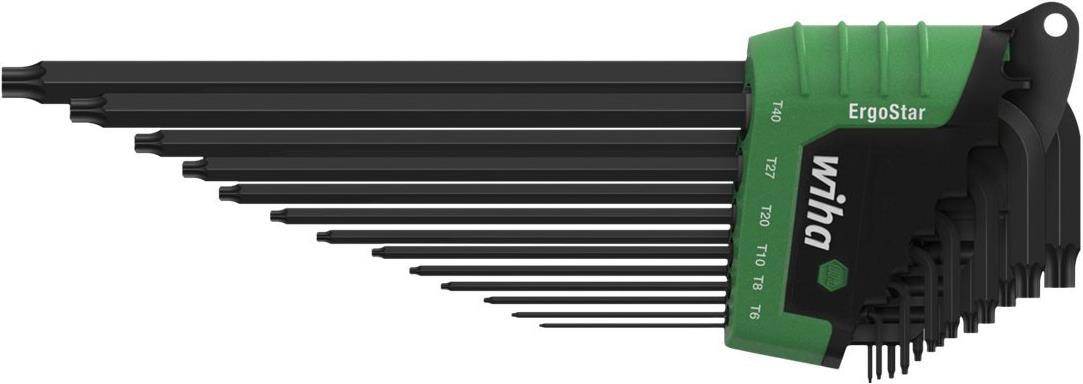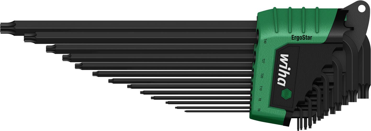 Das ist eine häufige Erfahrung. Es ist nicht einfach, einzelne Schlüssel aus vielen L-Schlüsselhaltern zu entfernen oder sie wieder in den Halter zu stecken. Mit dem Wiha ErgoStar können Sie sich jetzt von solchen Problemen verabschieden, denn er beseitigt sie auf geniale Weise. Durch das Drehen eines L-Schlüssels im Halter drehen sich alle anderen Schlüssel im gleichen Winkel zur Seite, so dass Sie den benötigten Schlüssel schnell und bequem entnehmen können. Ein Klemmmechanismus in der Halterung sorgt dafür, dass die Schlüssel nicht herausfallen können, egal ob die Halterung geöffnet oder geschlossen ist. Dank der MagicSpring-Haltefunktion mit Federstahlring halten die L-Schlüssel alle TORX-Schrauben in jeder Position perfekt fest, ohne dass Magnete benötigt werden. Mit der Aufhängevorrichtung am Halter kann der Anwender das L-Schlüsselset direkt am Arbeitsplatz aufhängen.Produkttext[/head]Erleichtert die HandhabungImmer der richtige Schlüssel am richtigen Ort.Spart ZeitSorgt für Ordnung: Das Entnehmen und das definierte Einstecken in den Halter ist kinderleicht.Steigert Ihre Effizienz Wiha MagicSpring® Haltefunktion hält alle Torx® Schrauben ohne Magnet fest.Wer kennt das nicht? Bei vielen Stiftschlüsselhaltern ist es umständlich, einzelne Schlüssel zu entnehmen oder wieder in den Halter zurückzuführen. Doch damit macht der Wiha ErgoStar jetzt Schluss, denn er löst dieses Problem auf eine geniale Art und Weise. Die Drehung eines einzelnen Stiftschlüssels im Halter führt dazu, dass sich alle anderen Schlüssel im gleichen Winkel zur Seite drehen und eine schnelle und komfortable Entnahme ermöglicht wird. Eine Klemmung in dem Haltern sorgt dafür, dass die Schlüssel sowohl bei geschlossenem als auch bei geöffnetem Halter nicht herausfallen können. Dank der MagicSpring®-Haltefunktion halten die Stiftschlüssel alle Torx® Schrauben ohne Magnet in jeder Lage perfekt fest. Im Set sind 13 schwarzoxidierte Torx® Stiftschlüssel in den gängigen Größen enthalten. Mithilfe der Hängelasche am Halter kann der Stiftschlüsselsatz direkt am Arbeitsplatz aufgehängt werden.AnwendungFür das kraftvolle Festdrehen und Lösen von TORX®-Schrauben. Mit Schraubenhaltefunktion für das Verschrauben anschwer zugänglichen Stellen.1x Stiftschlüssel (24313), TORX®: T5, Länge Stiftschlüssel: 72 mm1x Stiftschlüssel (31233), TORX®: T6, Länge Stiftschlüssel: 80 mm1x Stiftschlüssel (31234), TORX®: T7, Länge Stiftschlüssel: 88 mm1x Stiftschlüssel (31235), TORX®: T8, Länge Stiftschlüssel: 101 mm1x Stiftschlüssel (31236), TORX®: T9, Länge Stiftschlüssel: 111 mm1x Stiftschlüssel (31237), TORX®: T10, Länge Stiftschlüssel: 121 mm1x Stiftschlüssel (31238), TORX®: T15, Länge Stiftschlüssel: 136 mm1x Stiftschlüssel (31239), TORX®: T20, Länge Stiftschlüssel: 148 mm1x Stiftschlüssel (31240), TORX®: T25, Länge Stiftschlüssel: 163 mm1x Stiftschlüssel (31241), TORX®: T27, Länge Stiftschlüssel: 176 mm1x Stiftschlüssel (31242), TORX®: T30, Länge Stiftschlüssel: 191 mm1x Stiftschlüssel (31243), TORX®: T40, Länge Stiftschlüssel: 210 mm1x Stiftschlüssel (31244), TORX®: T45, Länge Stiftschlüssel: 232 mm[head]Hauptmerkmale