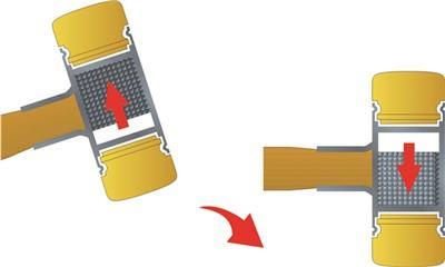 Rückschlagfreier Schonhammer mit Hickory-Holzstiel.