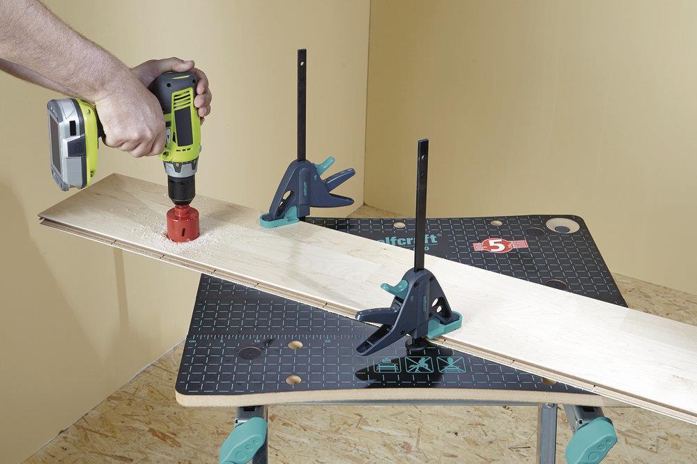 Für alle Werktische mit 20 mm Bohrungen in der Arbeitsplatte (passt auf alle wolfcraft Tische)