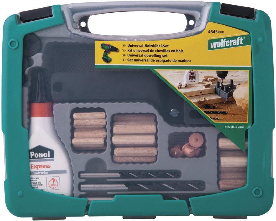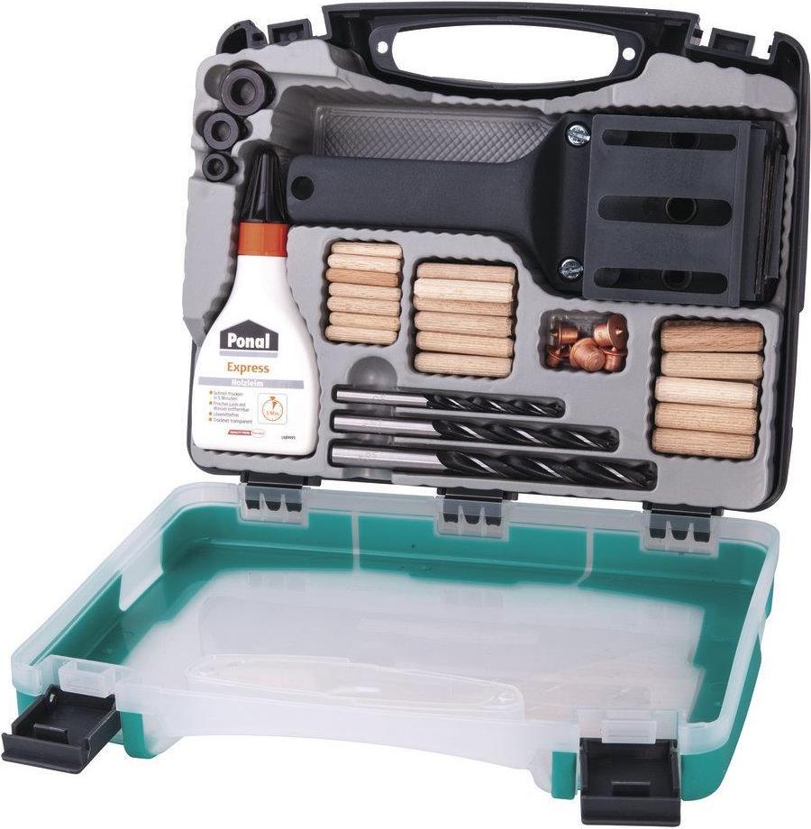 Universal-Holzdübel-Box 78tlgDas Komplett-Starter-Set für alle gängigen Holz-Dübel-Verbindungen wie passgenaue und stabile Eck-, T- und Flächenverbindungen. Für 6, 8 und 10 mm Holzdübel.Ausstattung: Für 6, 8 und 10 mm Holzdübel<