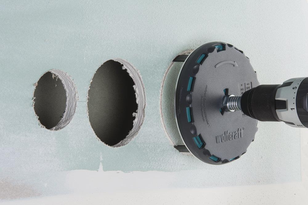 Die wolfcraft GmbH ist ein im Jahre 1949 von Robert Wolff gegründetes Unternehmen, das zu den Mitbegründern der deutschen Heimwerker-Branche gezählt wird. Es ist als Hersteller und Anbieter von Werkzeugen und Elektrowerkzeug-Zubehör tätig. Zu den Hauptabnehmern zählen insbesondere Baumärkte und Fachhandelsunternehmen. Der Sitz der Geschäftsführung befindet sich in Kempenich in der Eifel. wolfcraft produziert vorrangig im hauseigenen Werk in Weibern, sowie in Malé Dvorniky (Slowakei). Um den weltweiten Waren-Tourismus und die damit verbundene CO2-Emission zu begrenzen, werden die europäischen Produktionsstätten im Gegensatz zu den Produktionskapazitäten Fernost vorzugsweise genutzt. wolfcraft ist mit einem Exportanteil von 70 % ein international agierendes Unternehmen mit eigenen Vertriebsmitarbeitern in vielen europäischen Ländern sowie zahlreichen Handels- bzw. Distributionspartnern weltweit. Mit über 600 Mitarbeitern in 16 Ländern tätig, erhielt das Unternehmen für seine Produkte mehrere Auszeichnungen, unter anderem jeweils einen \"red dot design award\" für die Produkte \"One Hand Clamp\" und \"Quickfix\". Derzeit werden unter der Marke wolfcraft rund 2.500 Artikel angebotenfür Gipskartonplatten OSB-Platten Weichholz Sperrholznur ein Produkt für alle üblichen Radien im Trockenbaukomfortabel stufenlos verstellbar in drei Schritten: lösen - synchron justieren – fixierenfeine und saubere Schnitte durch spezielle Zahngeometriedrei integrierte Skalen für alle üblichen Maßegeschützter Arbeitsbereich durch großen Bohrtellerzuverlässige Staubabfuhr für dauerhaft funktionsfähige Stellmechanikmit drei geschränkt verzahnten SchneidenInklusive: 1 Sechskant-Schlüssel SW 25 1 Sechskant-Schlüssel SW 4Verpackung: Doppelkarte mit Einlegeblister