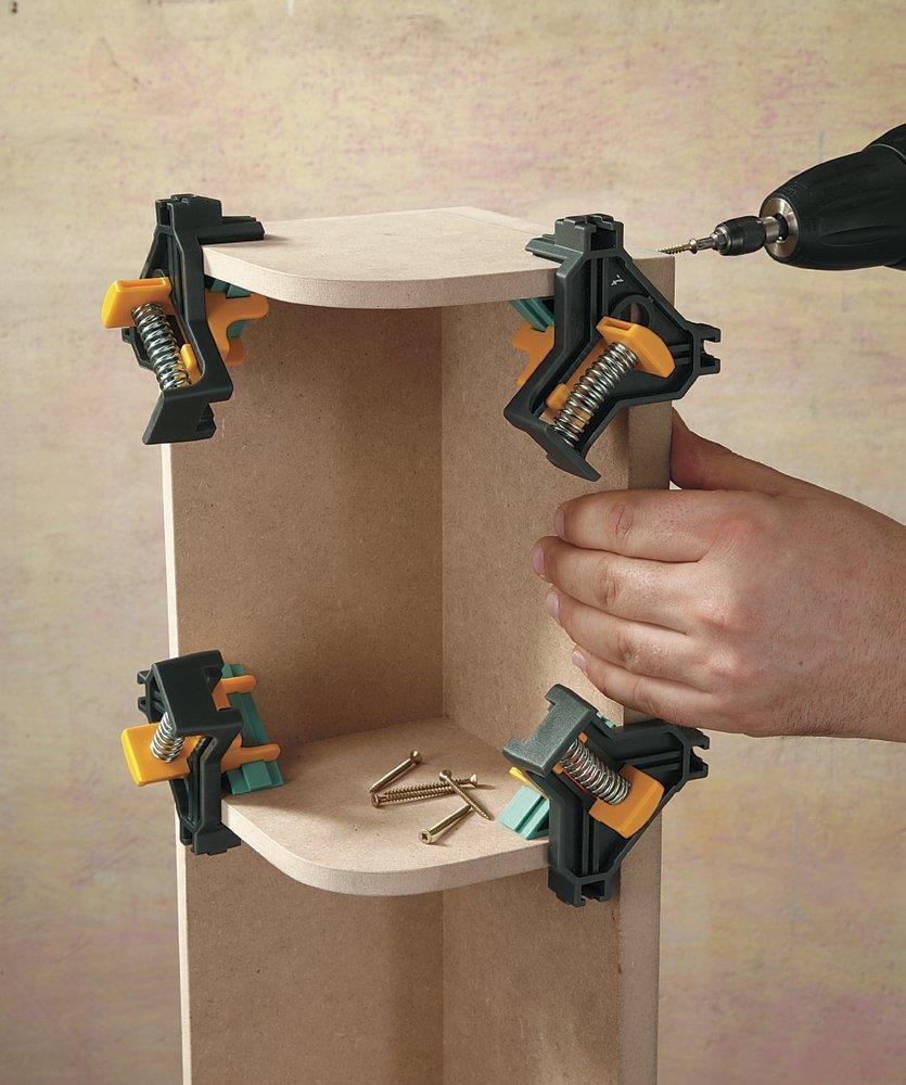 Der Eckenspanner ES 22 fixiert Bretter und Rahmen, schnell und einfach, im 90° Winkel. Zum Beispiel beim Bau von Regalen, kleinen Schränken oder Rahmen.