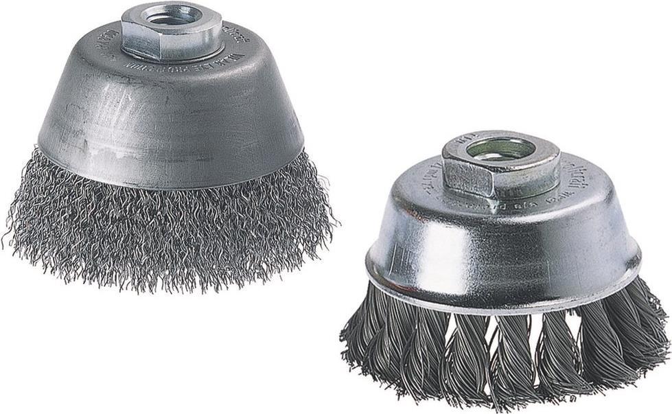 Stahldraht-Topfbürste WS gez. M14 Ø 75 mmAusstattung: Gut geeignet für Metall, BlechBedingt geeignet für NE-Metall, Holz, SteinZum Entrosten und ReinigenZur Vorbereitung von Löt- und Schweißarbeiten.Technische Daten