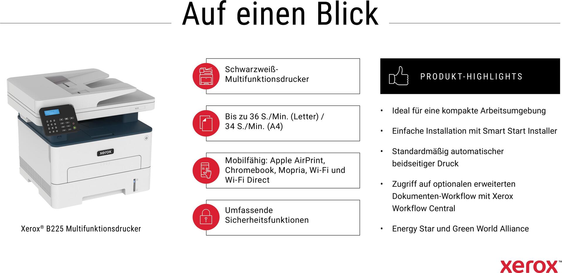 | Produktbeschreibung | Xerox B225 - Multifunktionsdrucker - s/w |