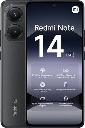 | Lieferumfang | Xiaomi Redmi Note 14 5G, USB-C Kabel, Schutzhülle, SIM-Auswurfwerkzeug (Hinweis: Netzadapter nicht enthalten) |