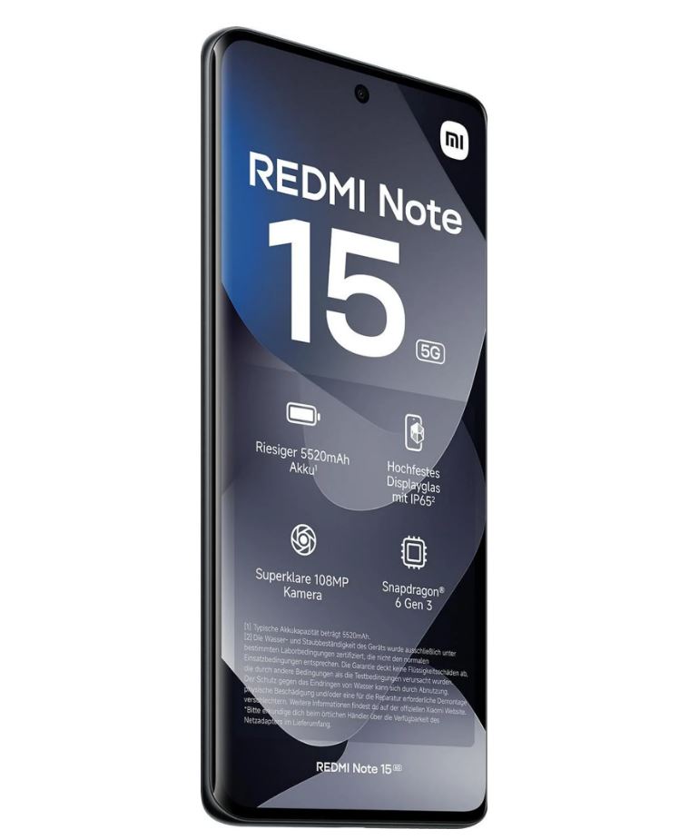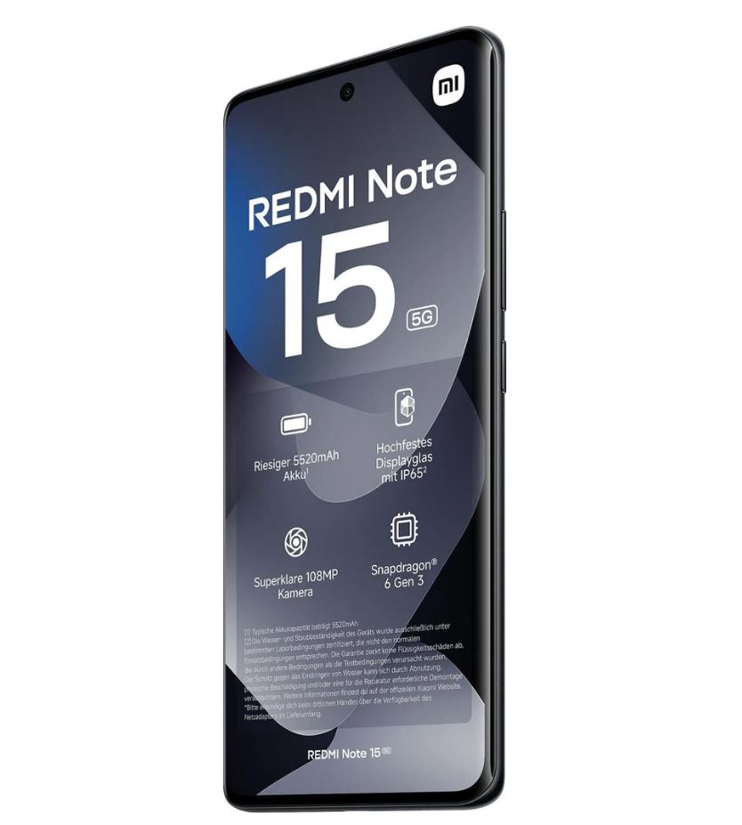 | Inhalt | Redmi Note 15 5G, USB-C Kabel, SIM-Auswurftool, Schutzhülle, Kurzanleitung, Garantiekarte (Hinweis: Netzteil separat erhältlich) |