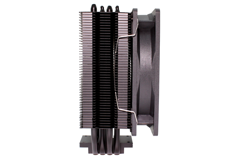 Der M704 erweitert erstmalig die Performance A+ Serie um CPU-Kühler. Wie die Netzteile, ist dieser Kühler komplett in schwarz mit rotem Lüfter gehalten. Der M704 verfügt über vier ebenfalls schwarze, extrem leistungsfähige Heatpipes, die eine Kühlleistung bis zu 180W ermöglichen. Der rote 120mm PWM-Lüfter komplettiert den CPU-Kühler, der mit seinem Design und Spezifikationen besonders für Gaming-Systeme mit potenten Mehrkern-Prozessoren geeignet ist.