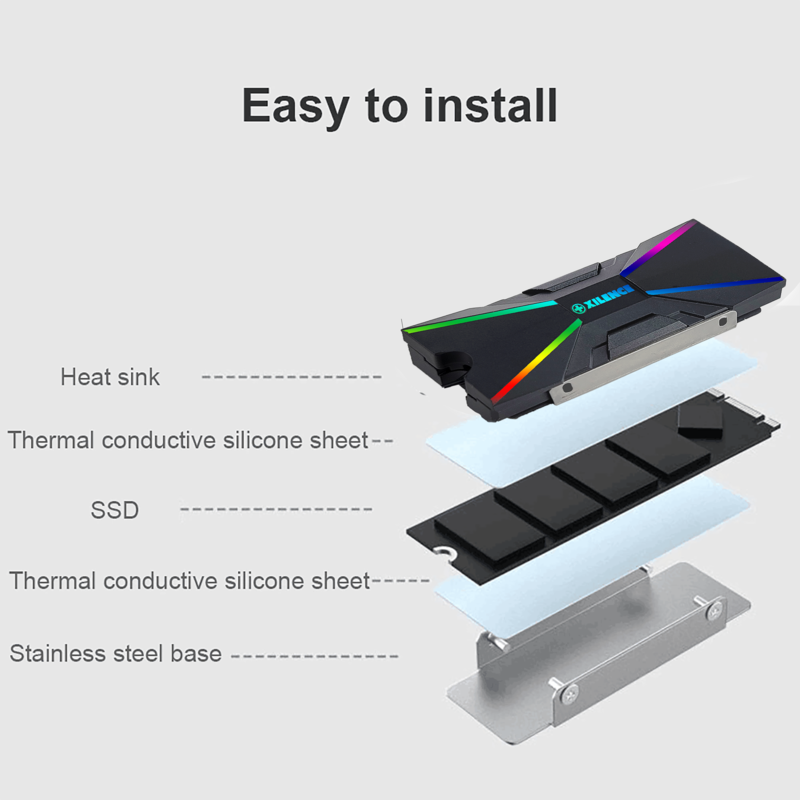 Bei intensiven Gaming- und Multimedia-Sessions erwärmt sich die SSD sehr stark, was auf Dauer die Leistung des Speichermediums beeinträchtigt oder die SSD sogar beschädigt. Der M2SSD.B.ARGB Kühler senkt die Wärme der M.2 SSD mit 2280er Format effizient und schonend. Die SSD wird zwischen wärmeleitenden Silikonfolien und dem Kühlkörper montiert, um eine sichere und verlustfreie Kühlung des Speichermediums zu gewährleisten. Durch die elegante Optik lässt sich der Kühler problemlos in verschiedene PC-Builds integrieren. Die ARGB-Beleuchtung lässt den Speicher auch im Inneren des PC-Gehäuses erstrahlen.