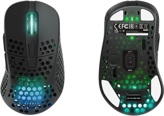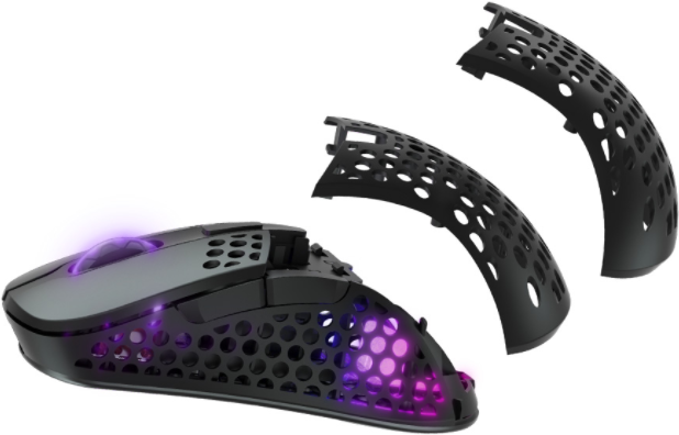 Xtrfy M4 RGB. Bewegungerfassungs Technologie: Optisch, Geräteschnittstelle: RF Wireless, Bewegung Auflösung: 19000 DPI, Reaktionszeit: 1 ms, Tastentyp: Gedrückte Tasten, Knopfanzahl: 5, Scroll Typ: Rad, Beschleunigung (Max.): 50 G. Farben der Beleuchtung: Multi. Energiequelle: Batterien. Produktfarbe: Schwarz (M4W-RGB-BLACK)