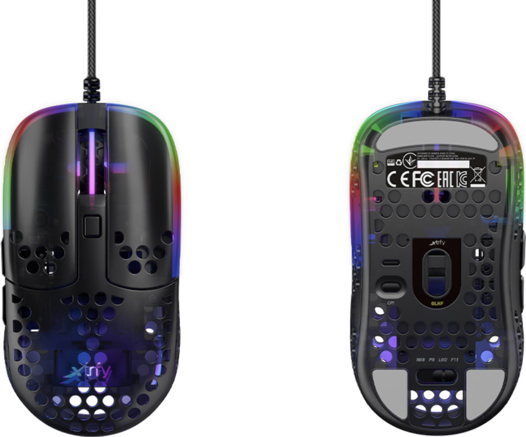 Leistungsmerkmale Staubsicher, anpassbare RGB LED-Beleuchtung, Pixart 3389 optischer Sensor, spritzwassergeschützt, Xtrfy EZcord Pro cable, Kailh GM 8.0 Switches