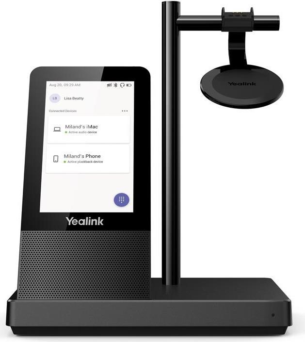 Der Yealink WH66 ist ein drahtloses DECT-Headset. Ermöglicht reibungsloses Arbeiten mit bedeutenden UC-Plattformen und lässt sich standardmäßig an IP-Telefone von Yealink anschließen. Der kapazitive Touchscreen mit 4" (480 x 800) der Basisstation sorgt für ein modernes Arbeitserlebnis, sodass der Anwender mit nur einer Berührung alles unter Kontrolle hat. Ermöglicht Einsatz als Arbeitsplatzsystem, Anrufverwaltung, Anschluss an mehrere Geräte (Tischtelefon/Mobiltelefon/Computer) sowie drahtloses Aufladen von Mobiltelefonen und spielt sogar als Freisprechanlage eine Rolle.
