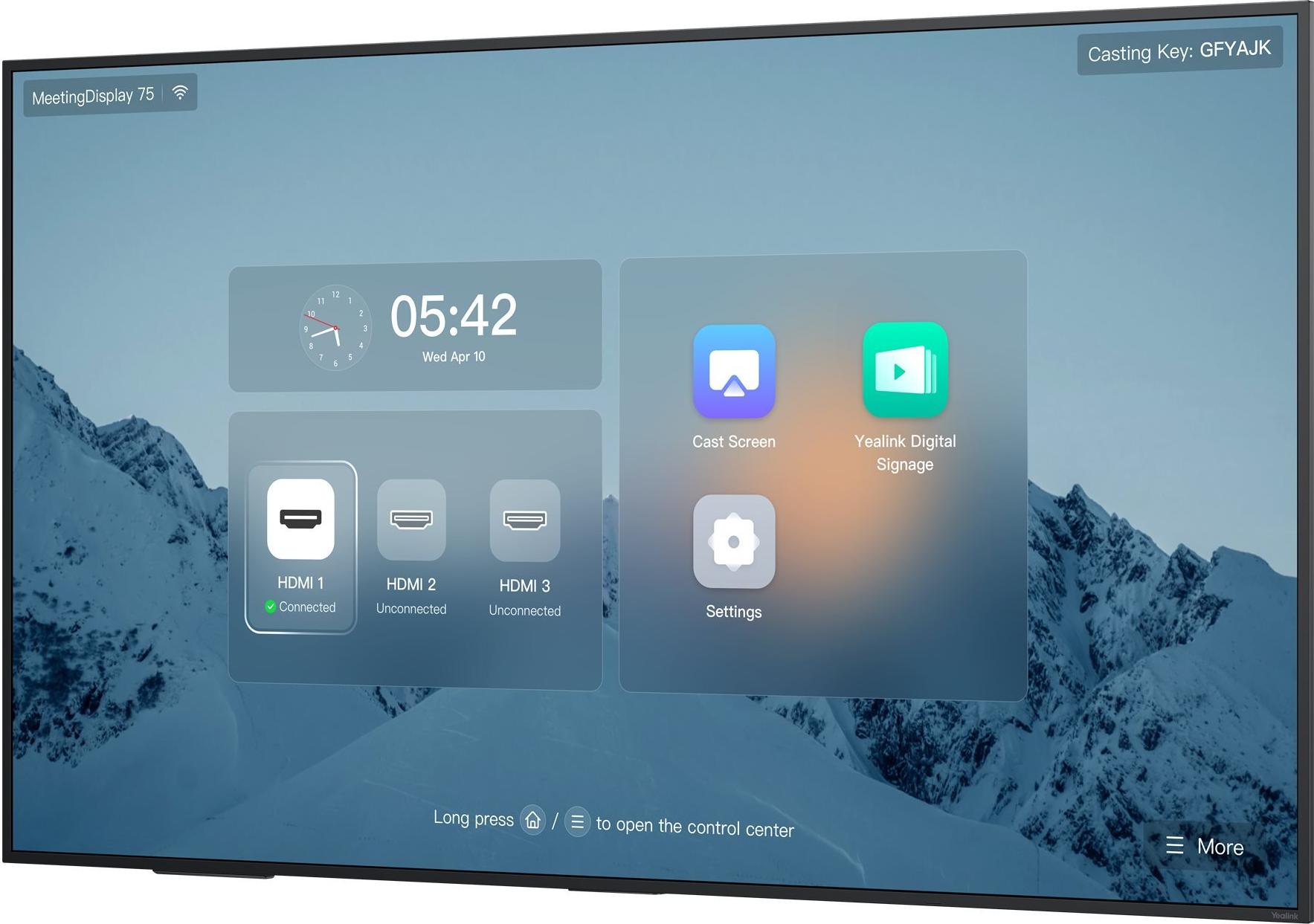 Das Yealink MeetingBoard 75 verfügt über ein 75-Zoll-Display mit 4K-UHD-Auflösung, das jede Präsentation lebendig und klar darstellt. Mit einer Helligkeit von 500 cd/m2 und einer LED-Hintergrundbeleuchtung minimiert es Blendeffekte und bietet gleichzeitig außergewöhnliche Blickwinkel von bis zu 178 Grad. Dieses kommerzielle Display wurde für interaktive Kommunikation entwickelt und eignet sich daher ideal für Besprechungen und kollaborative Arbeitsumgebungen.
