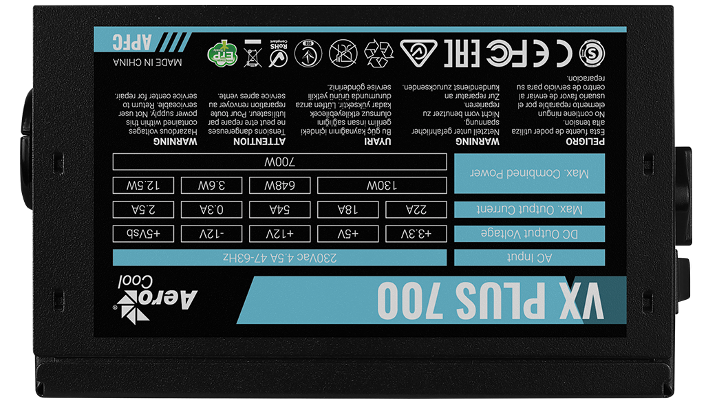 Das AeroCool VX PLUS 700-Netzteil wurde entwickelt, um Ihr System zuverlässig mit Strom zu versorgen. Es liefert eine robuste Leistung von 700 W und sorgt so für einen reibungslosen Betrieb Ihrer Komponenten. Mit einer Vielzahl von Schutzfunktionen, einschließlich Überspannungs-, Überleistungs-, Unterspannungs- und Kurzschlussschutz, gewährleistet dieses Netzteil Sicherheit und Stabilität für Ihr Setup.