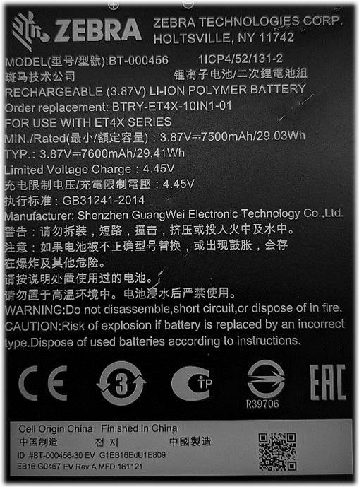 Zebra Ersatzakku Ersatzakku, 7600 mAh, passend für: ET4X (10") (BTRY-ET4X-10IN1-01)