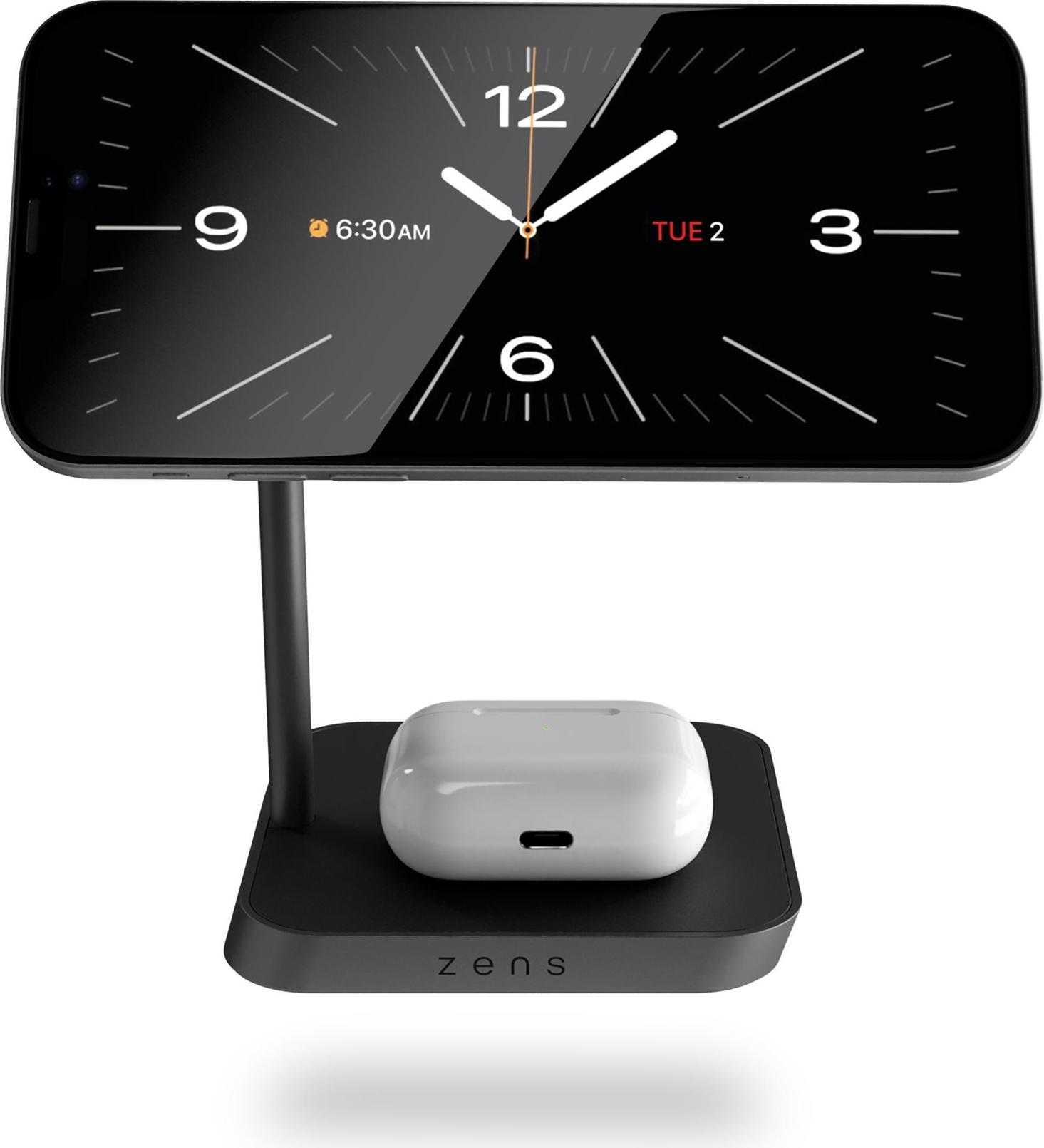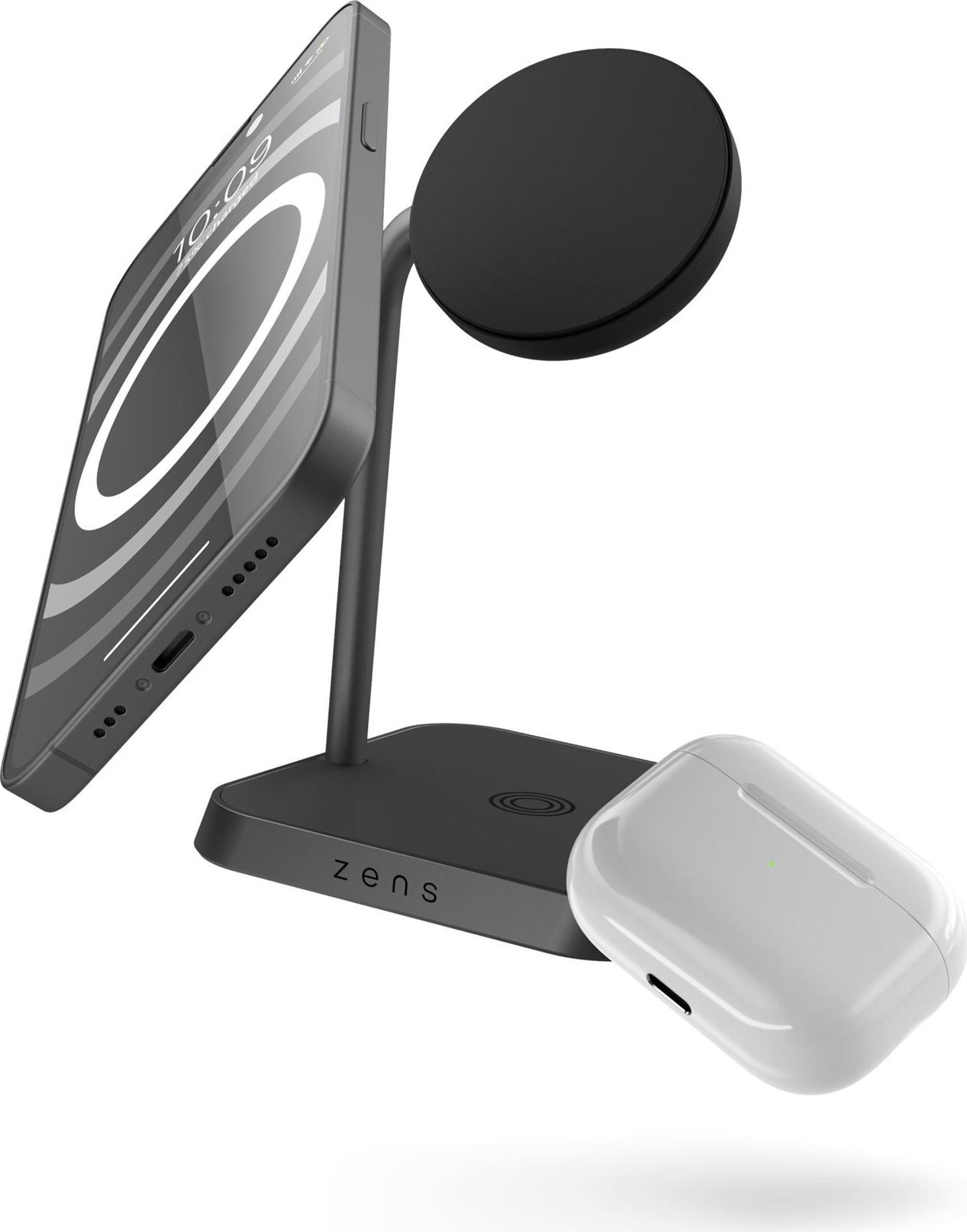 Der kabellose Ladeständer Zens 2 von Otter Products bietet eine Stromversorgungslösung für die Nutzer moderner Technologien. Dieser Ständer wurde sowohl für Mobiltelefone als auch für kabellose Kopfhörer entwickelt und ermöglicht ein nahtloses Laden, wobei Ihre Geräte sowohl horizontal als auch vertikal positioniert werden können. Mit der Möglichkeit, bis zu zwei Geräte gleichzeitig zu laden, und der Kompatibilität mit MagSafe-Zubehör erhöht er den Komfort des kabellosen Ladens. Das Material aus Zinklegierung sorgt für Langlebigkeit und verleiht jedem Raum einen modernen Touch. Ein Netzteil ist im Lieferumfang enthalten, sodass Sie den zuverlässigen Qi-Standard für kabelloses Laden ganz einfach nutzen können.