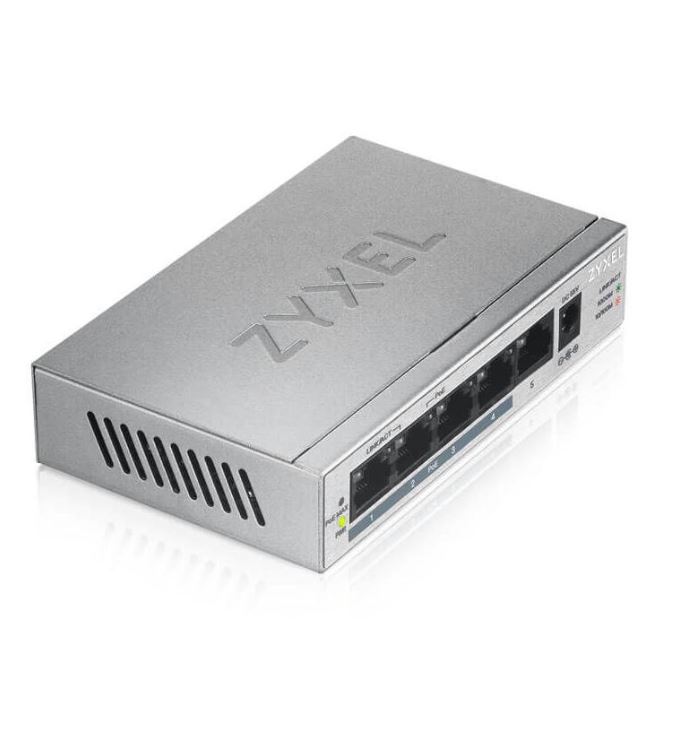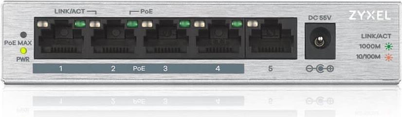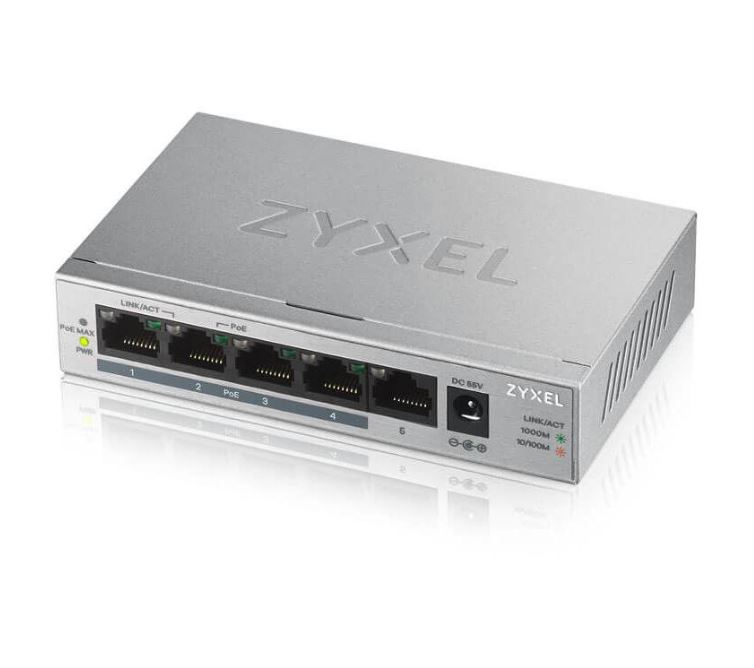 Der GS1005HP von Zyxel ist mit fünf Gigabit Ethernet-Ports ausgestattet. Vier davon sind PoE-Ports, die ein Gesamt-PoE-Budget bis zu 60 W liefern können. Der GS1005HP kann einfach mit PoE-fähigen Geräten in Ihrem Netzwerk verbunden werden. Er verfügt über ein Plug-and-Play-Design und kann ohne Performance-Einbußen Strom einsparen. Der GS1005HP füllt eine seit langem bestehende Lücke im Markt für Unmanaged PoE-Switches mit 802.3at-Standard, er hat ein hohes Power-Budget und ist für SOHOs und kleine Unternehmen erschwinglich.