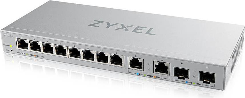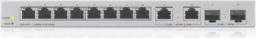 Der XGS1210-12 von Zyxel verfügt über zwei 10 Gigabit SFP+ Uplink-Ports, zwei 2,5 Gigabit Ports und acht Gigabit Ethernet-Ports. Schließen Sie 802.11ac oder 802.11ax APs an die 2,5 Gigabit Ports an, um maximale Wireless-Geschwindigkeit zu erreichen. Stellen Sie Ihre Daten von Ihrem NAS oder anderen wichtigen Netzwerkgeräten mit 10 Gigabit SFP+ schnell auf Ihren Client-Geräten bereit. Priorisieren, begrenzen und/oder schützen Sie Ihren Netzwerkverkehr mit der integrierten Weboberfläche. Speziell für Kunden, die sich eine einfache Netzwerkverwaltung für Zuhause oder im Büro wünschen.