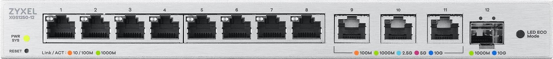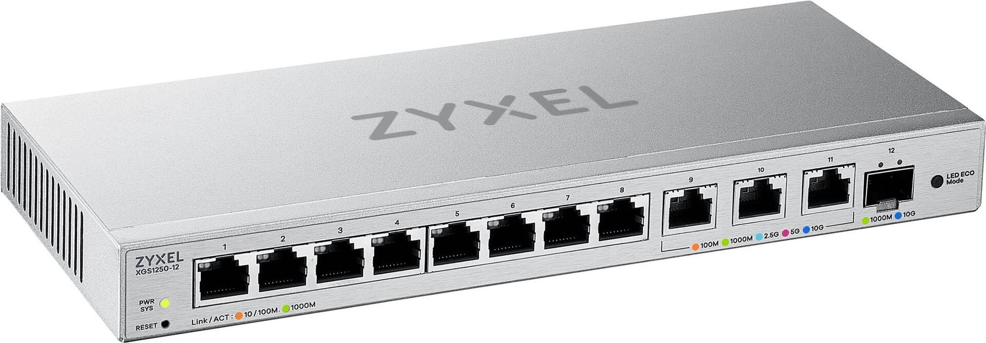 Der XS1250-12 verfügt über drei Multi-Gigabit-Ports, die bis zu 10G unterstützen, und einen zusätzlichen 10G Glasfaser-Port, dazu noch acht 1G Kupfer-Ports. Mit dem zusätzlichen Glasfaser-Port und den Verbindungsmöglichkeiten über 10G erhöhen Sie die Flexibilität. So können Sie mehr 10G Geräte bei Ihrer täglichen Arbeit einsetzen.